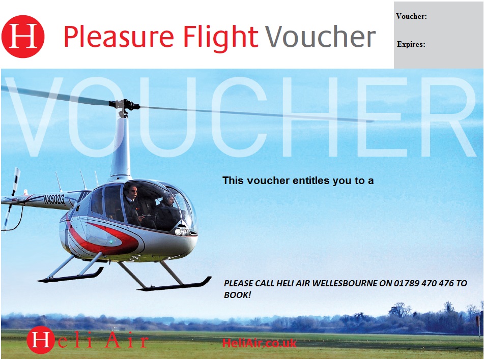 This flight is from Heli Air at Wellesbourne Airfield, conveniently located within driving distance of Warwickshire, Warwick, Leamington Spa, Stratford upon Avon, Birmingham, Coventry, The Cotswolds, Chipping Norton, Shipston on Stour, Banbury, Oxfordshire.