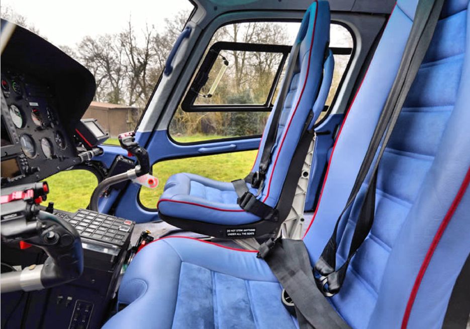 Immaculate interior with VIP blue leather and suede seats. In ‘as new’ condition inside and out, as can be seen by the various photos. More photos of this helicopter are available upon request.